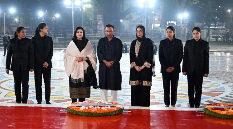 স্ত্রী ও কন্যাকে নিয়ে ভাষাশহীদদের প্রতি শ্রদ্ধা জানালেন প্রধানমন্ত্রী